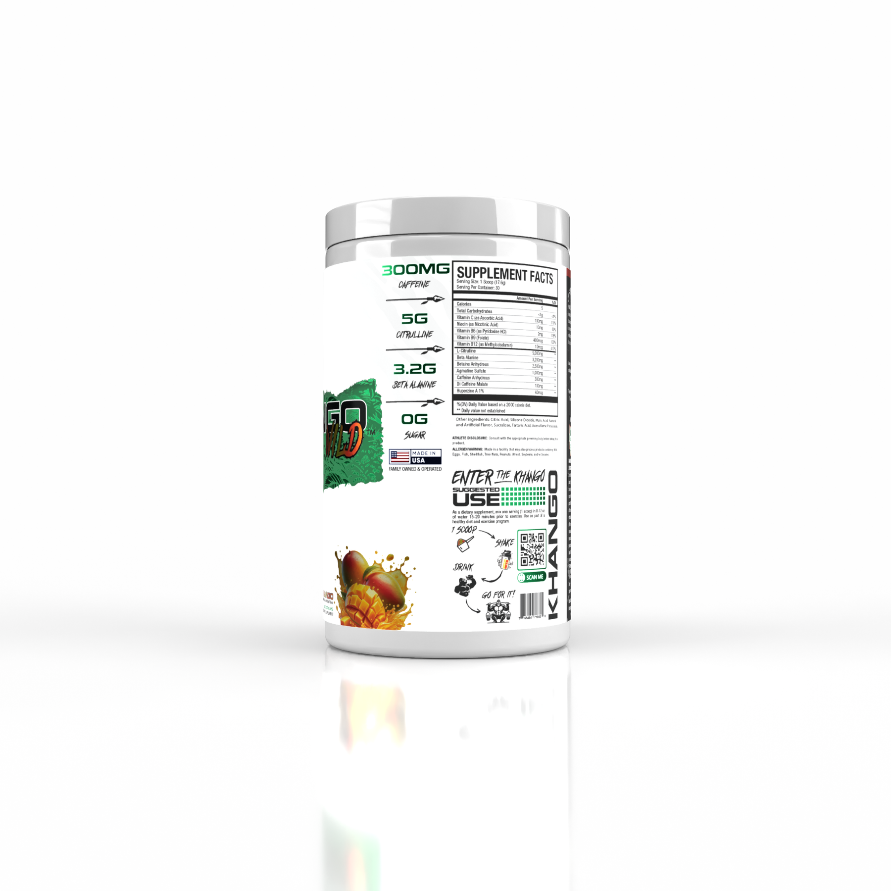 Khango Wild is a preworkout supplement meant to amp up your energy and dial in your focus on an elite level. Additionally, Khango Wild includes Nitric Oxide (NO) boosters which promote blood flow in the body to increase performance and obtain better muscle pumps. Not only will your mental clarity and focus be increased, but your ability to train and perform longer without fatigue will see improvement.*